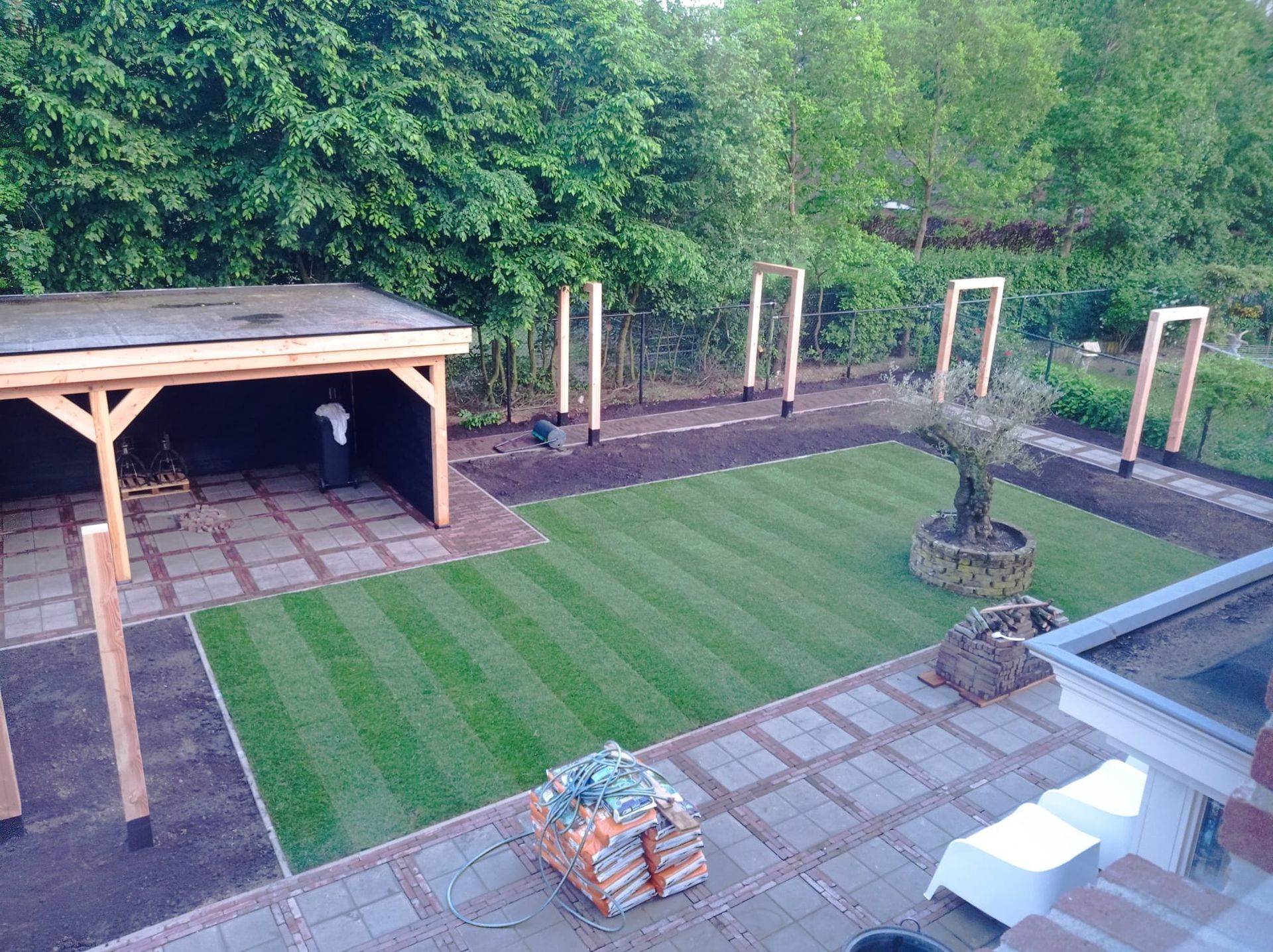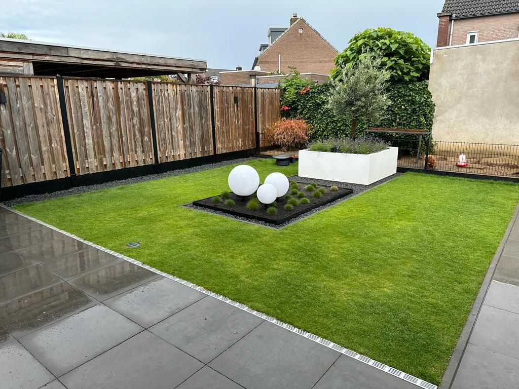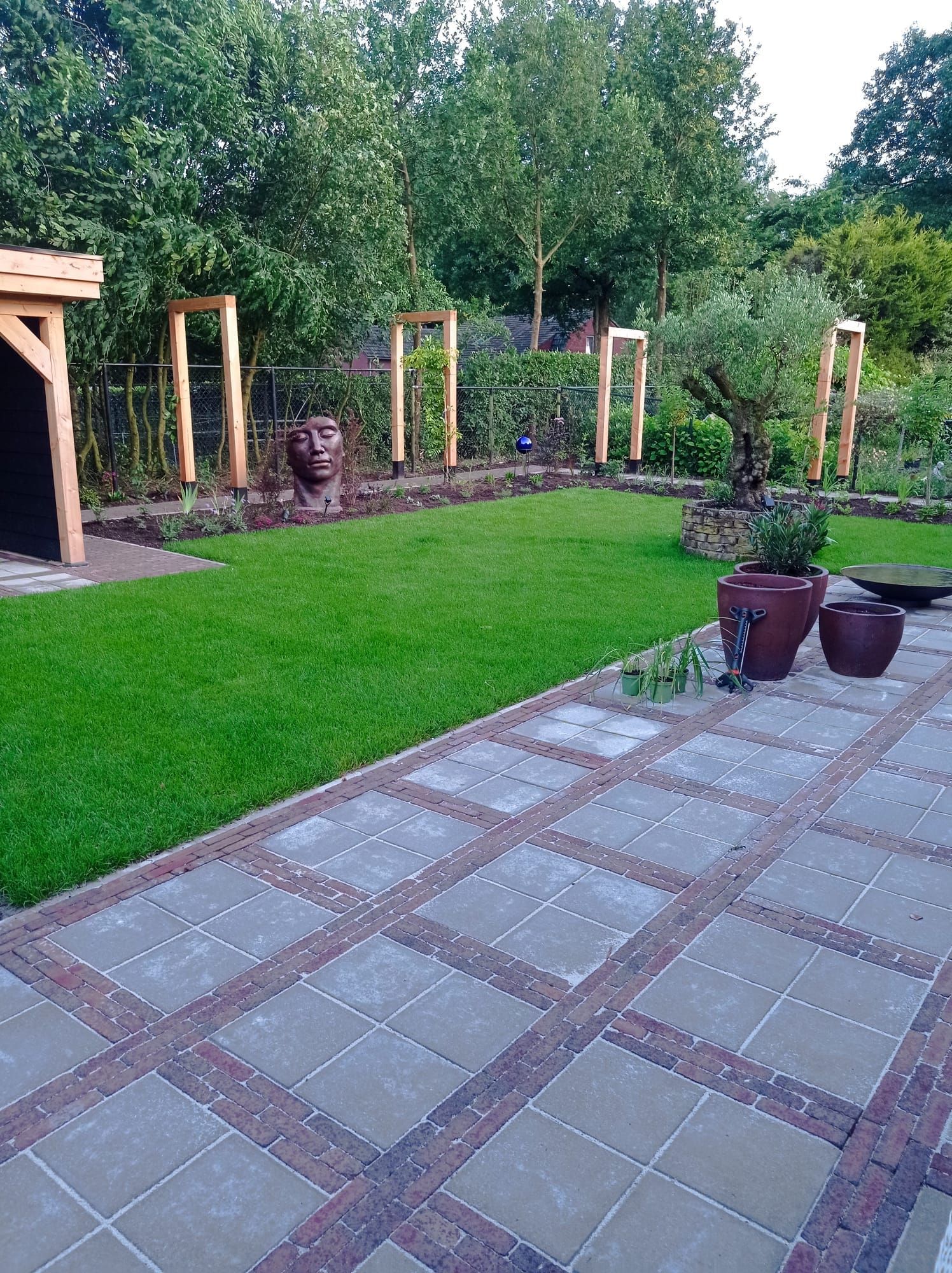 Deze volledige tuin hebben wij aangelegd, van het gras, bestrating en al het houtwerk. Het was een flinke klus, maar het eindresultaat is prachtig.