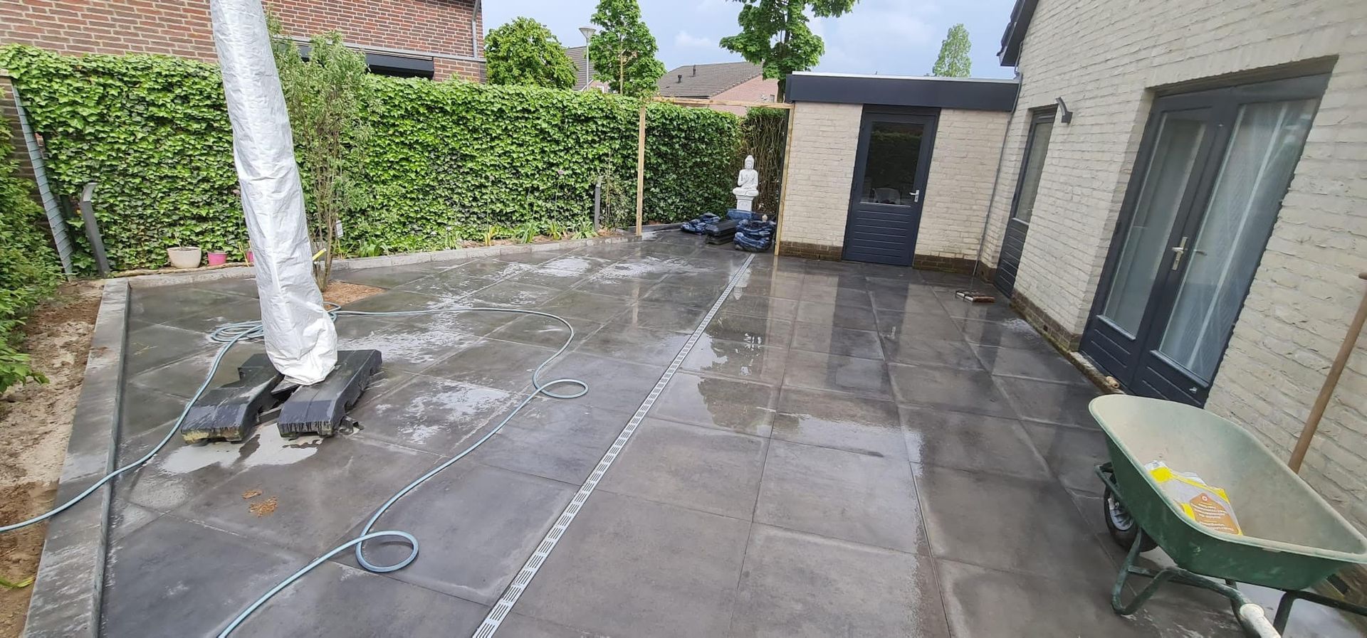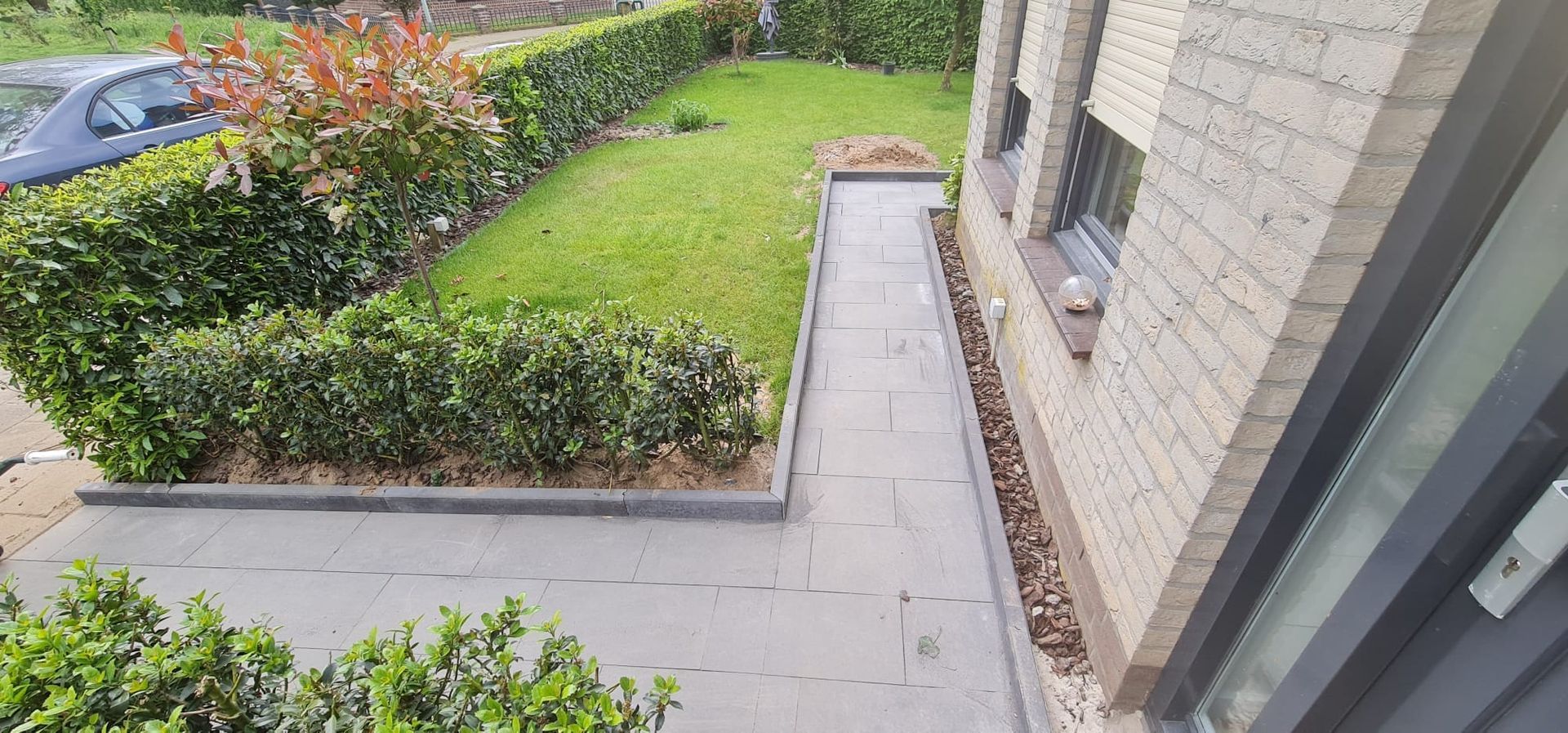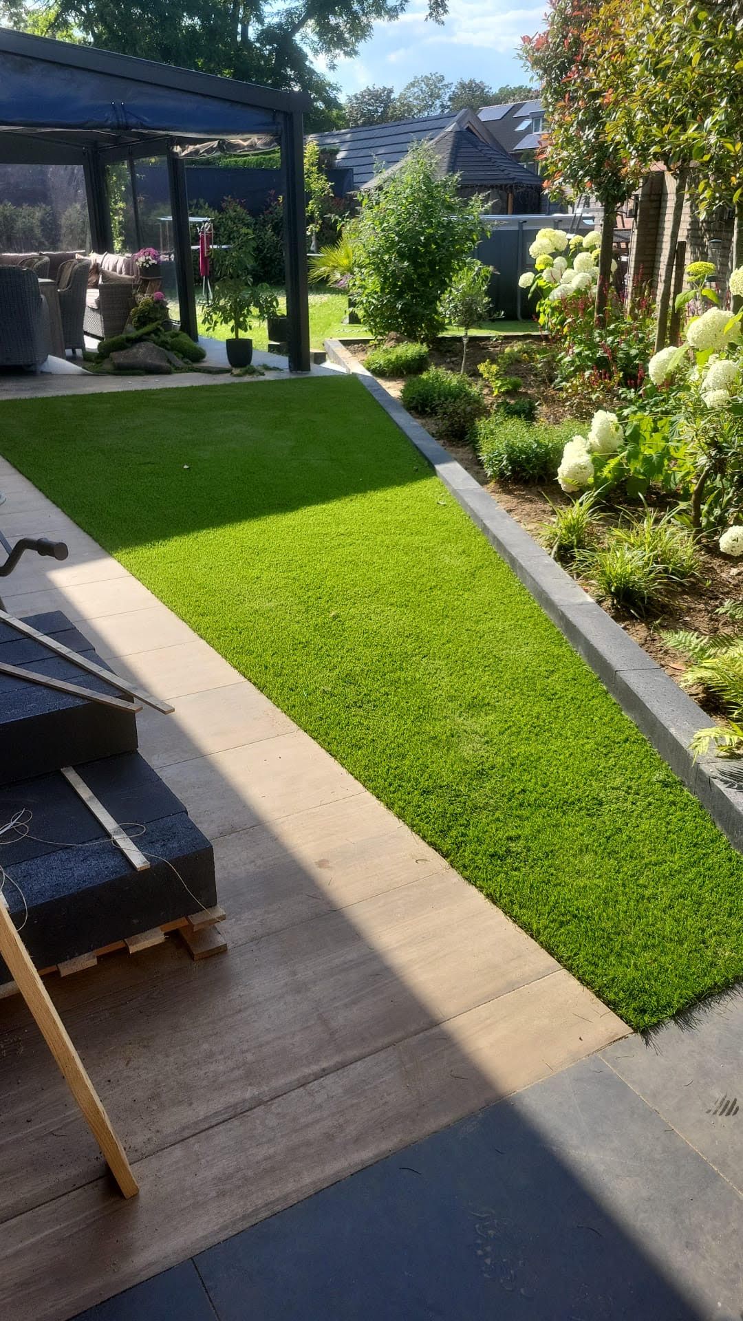 Deze volledige tuin hebben wij aangelegd, van het gras, bestrating en al het houtwerk. Het was een flinke klus, maar het eindresultaat is prachtig.