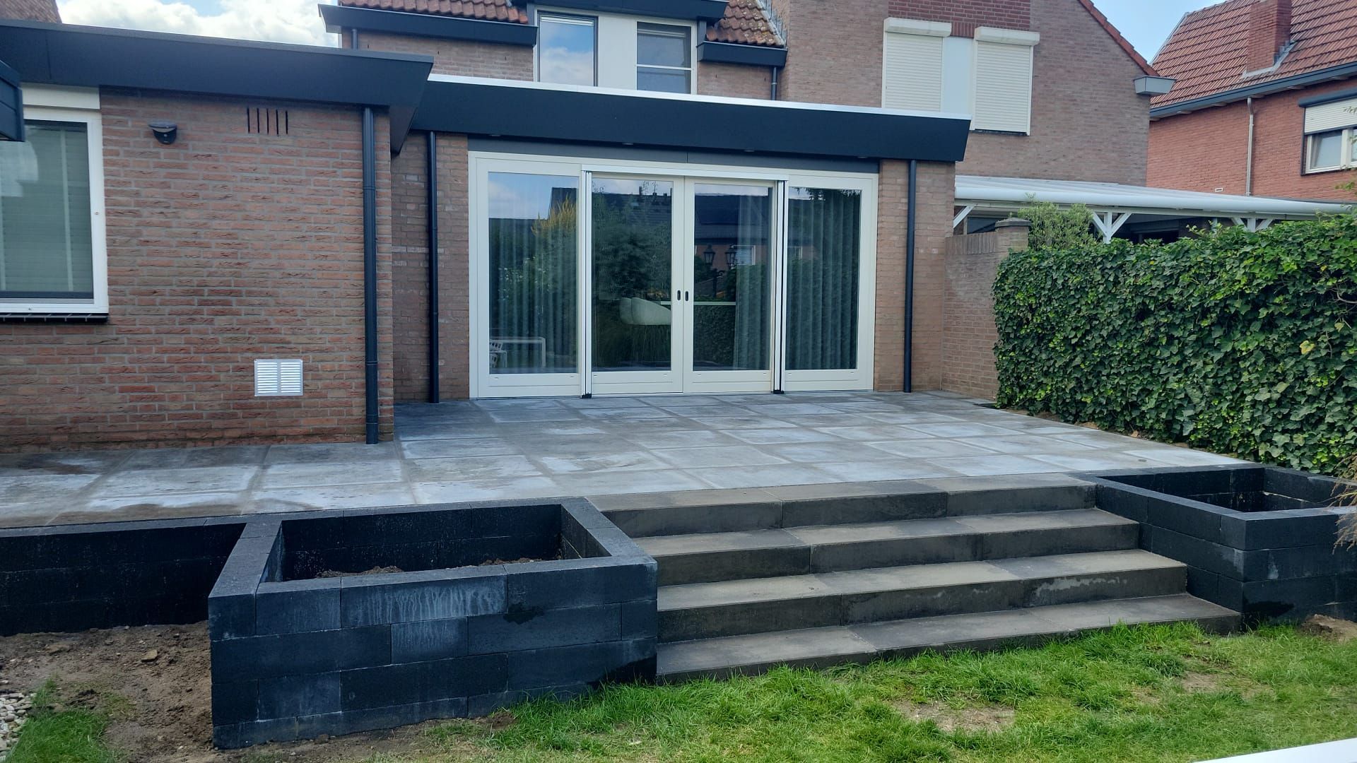 Ook deze mooie trap met een plantenbak van blokken hebben wij voor een tevereden klant geplaatst.